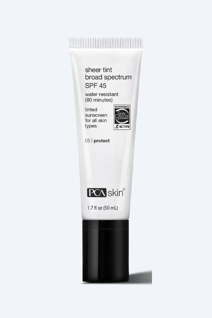 De Sheer Tint SPF 45 van PCA Skin is jouw dagelijkse multitasker: een breed spectrum zonnecrème met een subtiele tint die zich aanpast aan je huidskleur. Deze formule biedt niet alleen betrouwbare zonbescherming, maar egaliseert ook je teint en geeft een natuurlijke, gezonde glow zonder zware make-up.