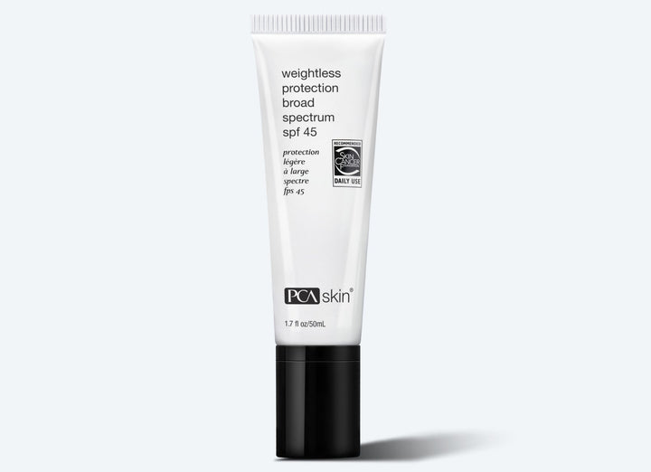Deze Weightless Protection SPF 45 van PCA Skin is allesbehalve een gewone zonnecrème. Speciaal ontwikkeld voor de gevoelige, vettere of acne-gevoelige huidtypes die vaak moeite hebben met zware, plakkerige zonnefilters. Deze formule is ultralicht, niet-comedogeen én laat geen witte waas achter.